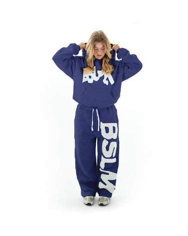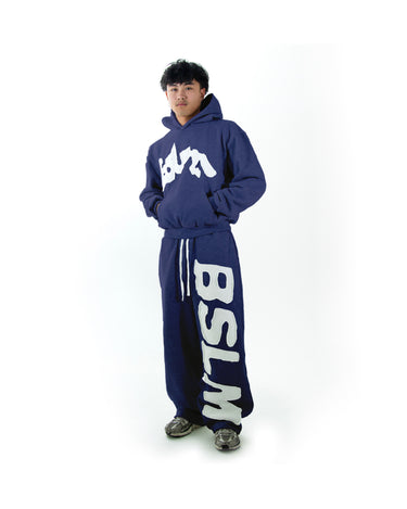 600 GSM heavyweight cotton with embroidered patched logos, double-lined build, satin-lined hood, and a faded stone-wash finish. Oversized, baggy fit.