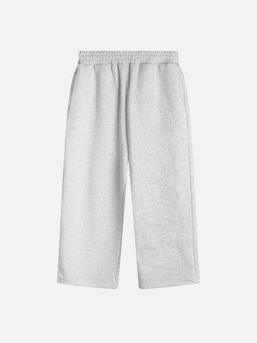 330 GSM heavyweight cotton with 3D embroidered logos, distressed cotton laces, and a faded stone-wash finish. Wide leg openings.