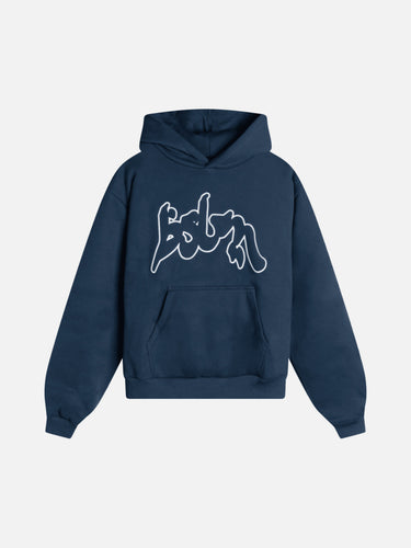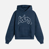 510 GSM heavyweight cotton with 3D outlined embroidery logos, double-lined build, and a faded stone-wash finish. Oversized, baggy fit.